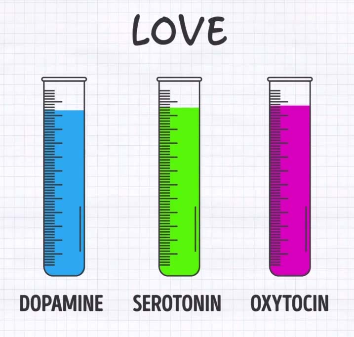 3つの生化学物質(ドーパミン|セロトミン|オキシトシン)の分泌と気分との関わり方。